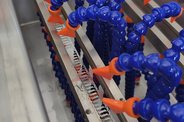 清洗工藝流程:上料→超聲波清洗→超聲波清洗→超聲波漂洗→風切+熱風干燥→下料